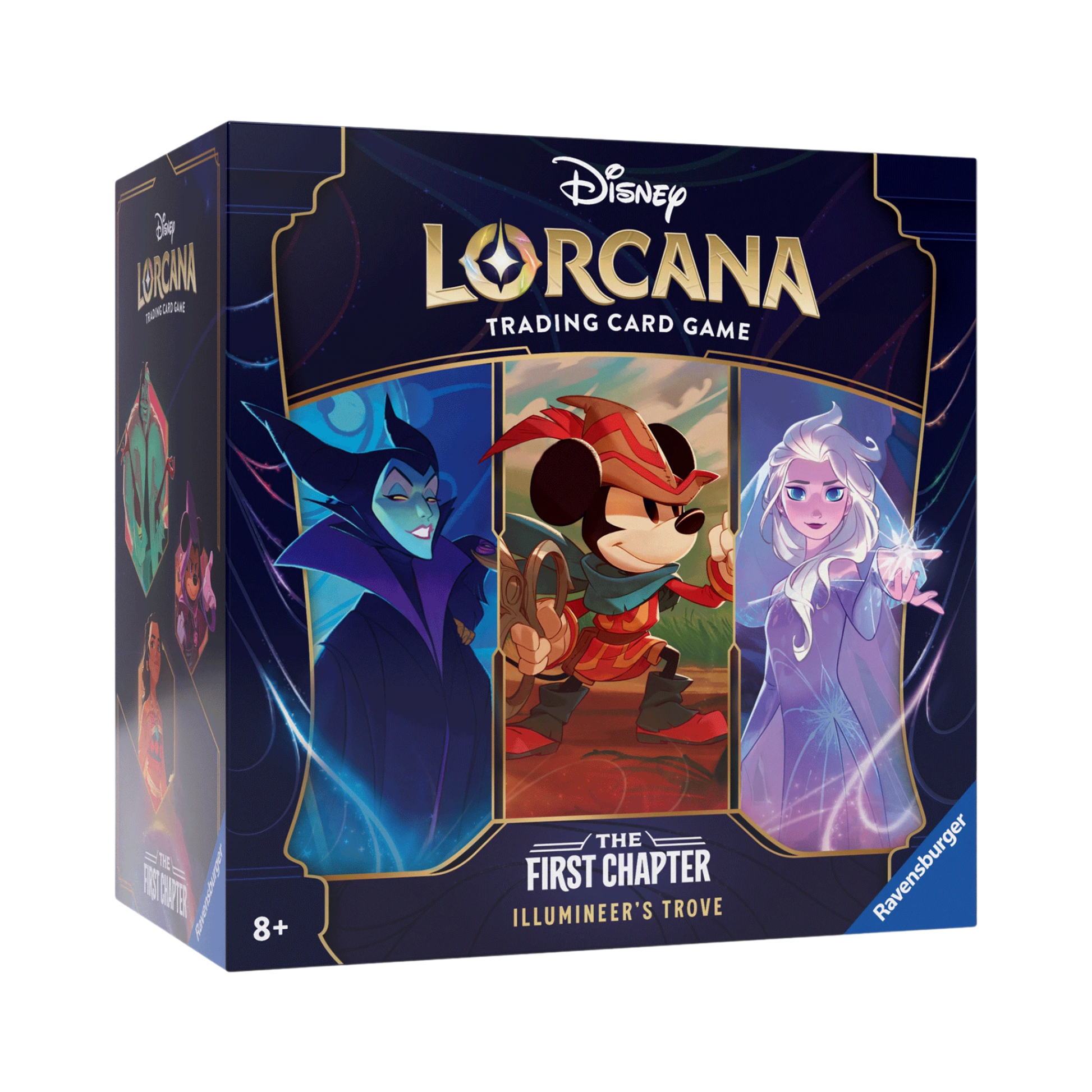 This beautifully designed storage box includes 8 booster packs, 2 deck boxes, 15 game tokens, a lore counter, and a special promo card, offering both functionality and exclusive collectibles. With artwork and components themed around The First Chapter expansion, this trove is the ideal starting point or centerpiece for any Lorcana collection.